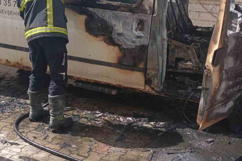 Nevşehir’de park halindeki bir minibüs çıkan yangında küle döndü. Olay, Cevher Dudayev Mahallesi Türkmen Sokak üzerinde meyda...