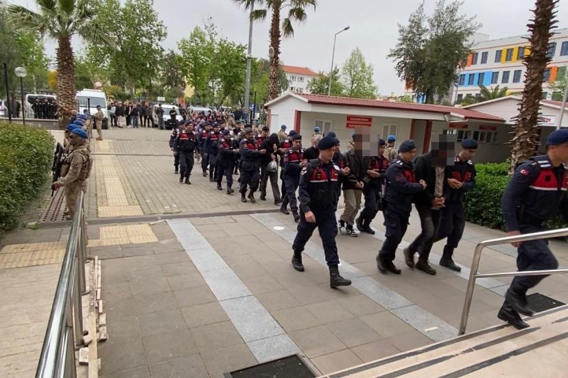 Olayla ilgili olarak gözaltına alınan 17 şüpheli jandarmadaki işlemlerinin ardından yoğun güvenlik önlemleri altında adliyeye sevk edildi.