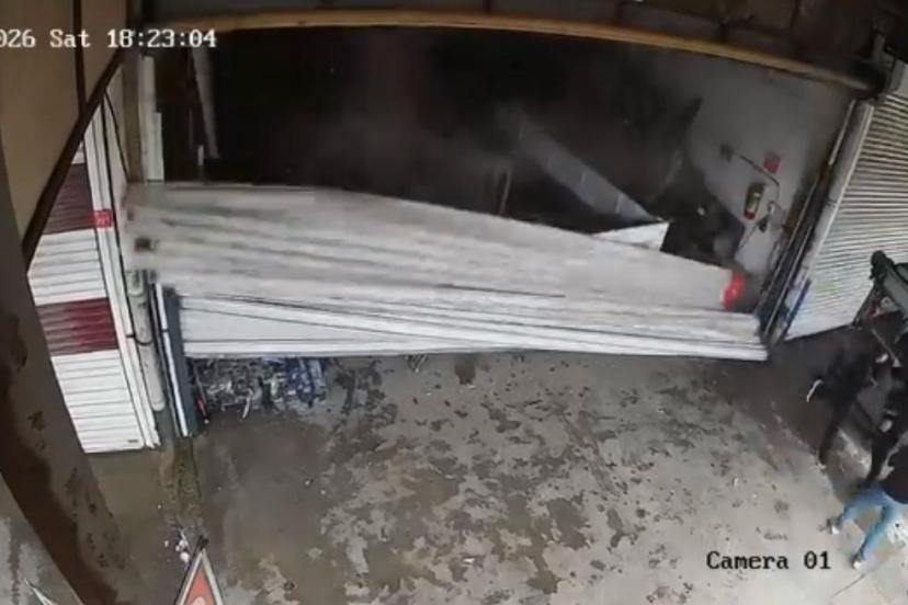 Kentte bulunan sanayi sitesindeki bir oto tamir dükkanında otomatik kepenk kapatılmaya çalışıldı. Kepenk takılarak kapanmayınca bir vatandaşın tekme vurmasıyla düşerek yerle bir oldu. O anlar, iş yerinin güvenlik kamerasına yansıdı.