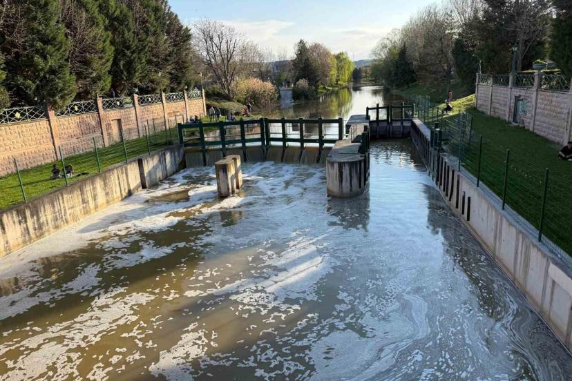 Eskişehir’de Porsuk Çayı’nın yüzeyinde yağmur sonrası oluştuğu tahmin edilen yoğun beyaz köpük tabakalar dikkat çekti.