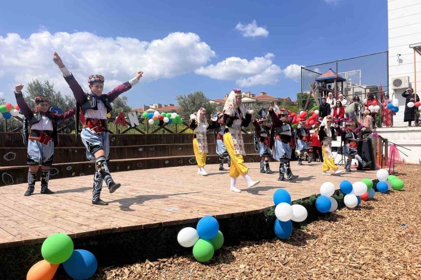 Öğretmenler, öğrenciler ve çok sayıda velinin yoğun ilgi gösterdiği Radikal Okulları Bornova Kampüsü’ndeki programda, ilkokul, ortaokul ve lise kademesindeki öğrenciler yeteneklerini sergiledi. Saygı duruşunda bulunulması ve İstiklal Marşı’nın okunmasıyla başlayan organizasyonda koro dinletileri ve modern sanat performanslarının yanı sıra Anadolu’nun farklı yörelerine ait halk oyunları sahnelendi. Özellikle Ege yöresine ait zeybek gösterisi ile hareketli figürleriyle dikkat çeken Kafkas oyunları izleyicilerden büyük beğeni topladı. Minik öğrencilerin müzik eşliğinde sergilediği modern dans koreografileri ise bayram coşkusunu zirveye taşıdı. Kutlama programı renkli anlara sahne olurken, etkinlik uluslararası bir katılıma da ev sahipliği yaptı. Organizasyon kapsamında Balkanlar’dan gelen dans topluluğu grubu, kendi kültürlerine ait yöresel oyunlarını izleyicilerin beğenisine sundu. Kültürel kaynaşmanın yaşandığı şenlikte, hem Radikal Okulları öğrencilerinin hem de yabancı misafirlerin sahne performansları etkinliğe katılanlar tarafından uzun süre ayakta alkışlandı. Kutlamalar, tüm öğrencilerin ellerinde Türk bayraklarıyla gerçekleştirdiği final gösterisi ve günün anısına çekilen hatıra fotoğrafları ile sona erdi.