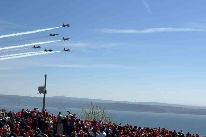 Çanakkale Kara Savaşları’nın 111’inci yıl dönümünde Şehitler Abidesi’nde 57. Alay Vefa Yürüyüşü’nün kapanış programı gerçekleştirildi. Törene Gençlik ve Spor Bakan Yardımcısı Safa Koçoğlu ve binlerce öğrenci katıldı. Tören ardından öğrencilere ve Şehitler Abidesi ziyaretçilerine Türk Yıldızları gösteri uçuşu gerçekleştirdi. Vatandaşlar gösteriyi ilgi ve heyecanla izledi.
