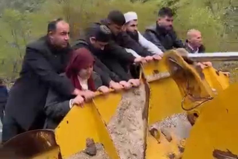 Sel yol vermeyince cenaze iş makinesiyle taşındı