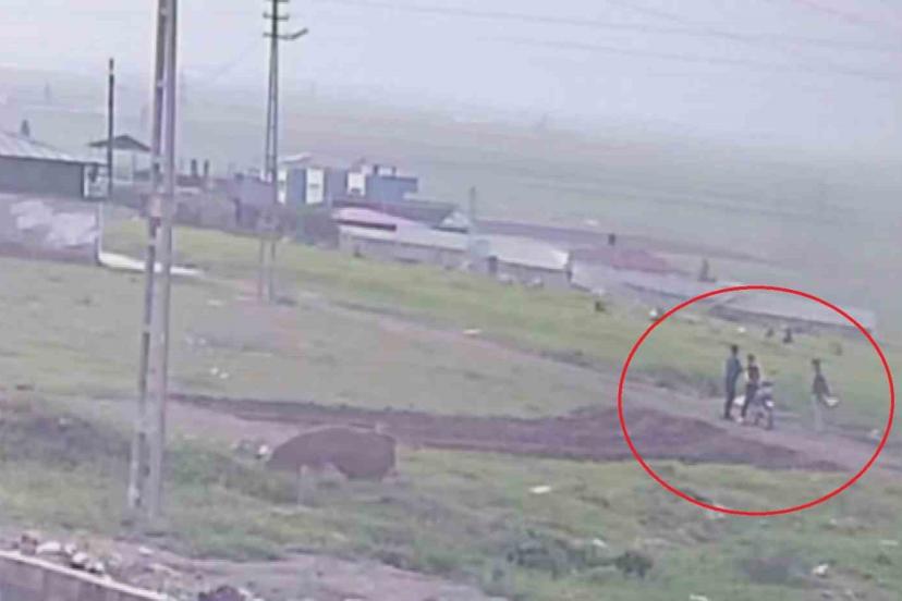 Hatay’ın Reyhanlı ilçesinde 3 çocuğun boş arazide silahla defalarca ateş edip, vatandaşların sesi duyup tepki göstermeleri üzerine motosiklete binerek kaçtıkları anlar kameraya yansıdı.
