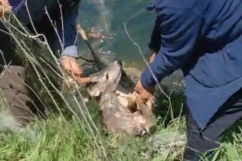 Sulama kanalına düşen karacayı vatandaşlar kurtardı
