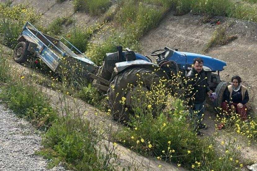 Manisa’nın Turgutlu ilçesinde ön lastiği çıkan traktörün takla atarak kanala savrulması sonucu 2 kişi yaralandı.