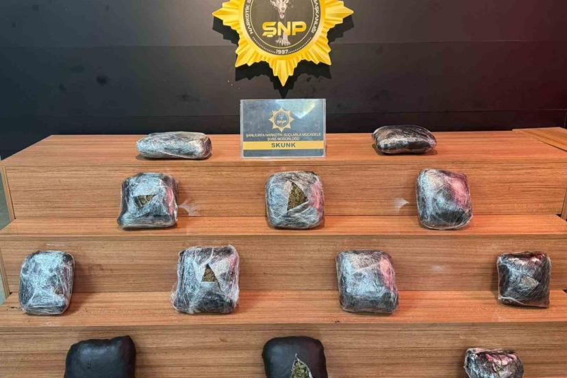 Edinilen bilgiye göre, Şanlıurfa İl Emniyet Müdürlüğü Narkotik Suçlarla Mücadele Şube Müdürlüğü ekipleri, bir aracı durdurarak içerisinde arama yaptı. Arama sırasında bir valizi açan ekipler, 12 parça halinde poşetlenmiş 8 kilogram skunk maddesi ele geçirdi.