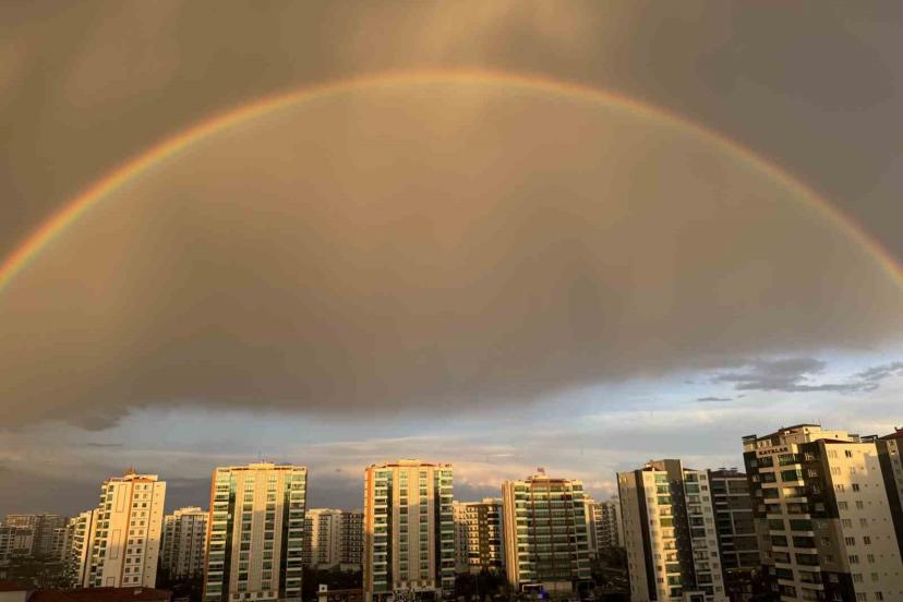 Yağmur sonrası oluşan gökkuşağı hayran bıraktı